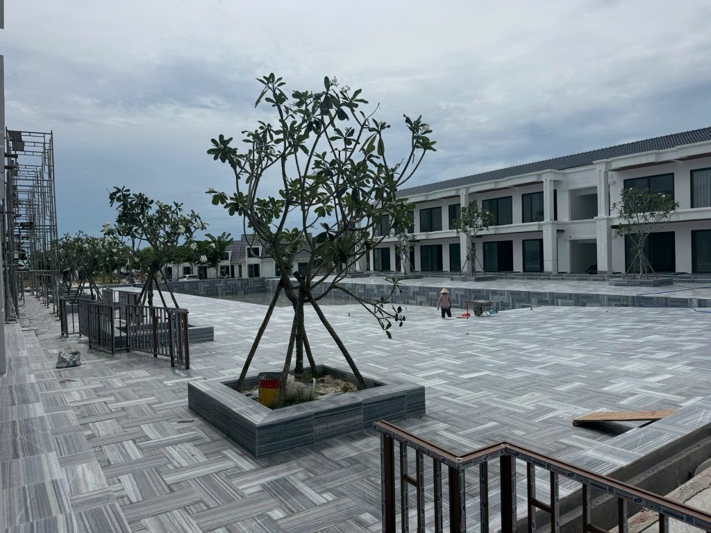 Sự kết hợp giữa đá sọc dưa tự nhiên và không gian xanh giúp tổng thể công trình trở nên hài hòa và đẳng cấp hơn.